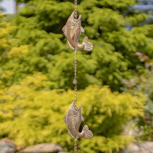 98" L. Iron Rain Chain w/ Jumping Fish in Copper