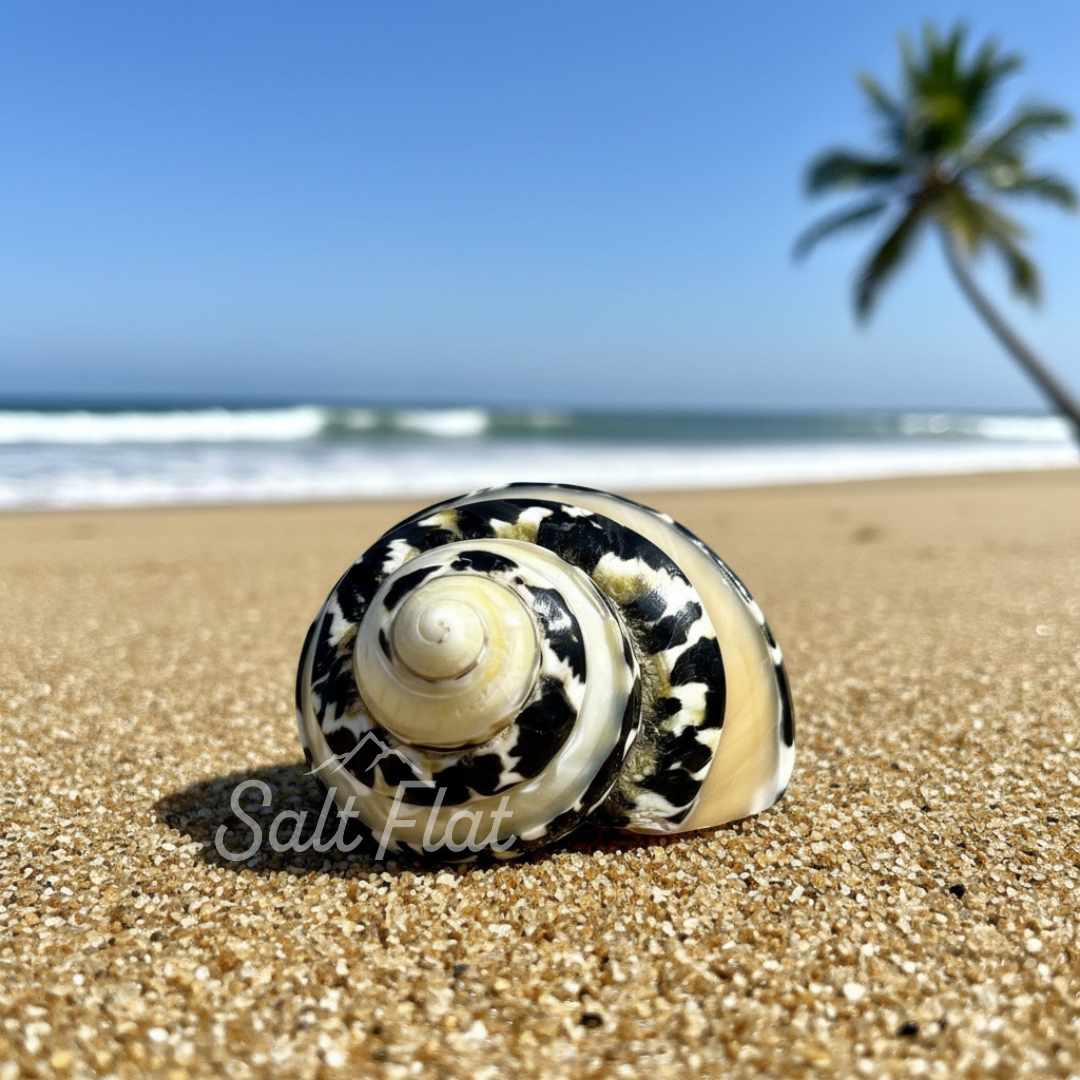 Discover the Tapestry Turbo, also known as a turban, once home to many sea snails. These shells can be found in oceans and tropical waters, making a unique addition to any shell collection or fish tank. They also make great homes for your pet hermit crab!